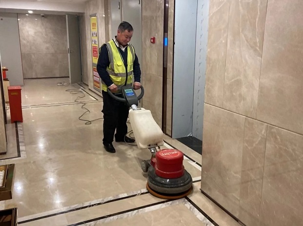 本月,我司武漢長(zhǎng)航中心常保項(xiàng)目組,按工作計(jì)劃對(duì)項(xiàng)目樓棟大堂地面石材進(jìn)行了結(jié)晶養(yǎng)護(hù)。