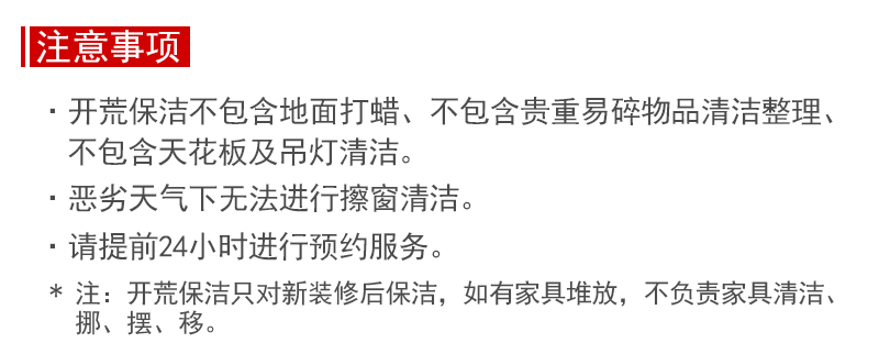 適合三個(gè)月以上或很久未徹底清潔的普通家庭房屋/出租房回收或入住/搬家后的房屋4居室及以上按10元/平米計(jì)算,請(qǐng)拍下后聯(lián)系客服改價(jià)或服務(wù)完成后在線補(bǔ)價(jià)。