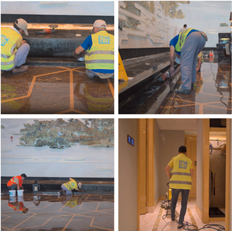 江城清洗擁有經(jīng)驗(yàn)豐富的石材養(yǎng)護(hù)團(tuán)隊(duì),熟知各類石材特性與養(yǎng)護(hù)需求。運(yùn)用...設(shè)備和技術(shù),針對(duì)萬(wàn)達(dá)瑞華酒店的大堂、走廊、客房等區(qū)域,定制多套養(yǎng)護(hù)方案,解決現(xiàn)有問(wèn)題并延長(zhǎng)石材使用壽命。選用環(huán)保型養(yǎng)護(hù)材料,對(duì)人體與環(huán)境無(wú)害,不影響酒店正常運(yùn)營(yíng)及客戶入住體驗(yàn)。經(jīng)深層清潔、拋光、封釉等工藝,讓酒店石材地面和墻面重?zé)ü鉂桑纬捎行ПWo(hù)層,抵御污漬滲透和日常磨損。