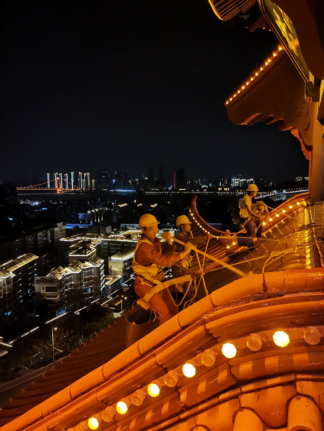 為了不影響白天游客的正常游玩,我們的外墻清洗師傅們選擇在夜間施工,實(shí)現(xiàn)了對游客完全的零打擾服務(wù),但同時(shí)也對此次的清洗作業(yè)帶來了一定難度。